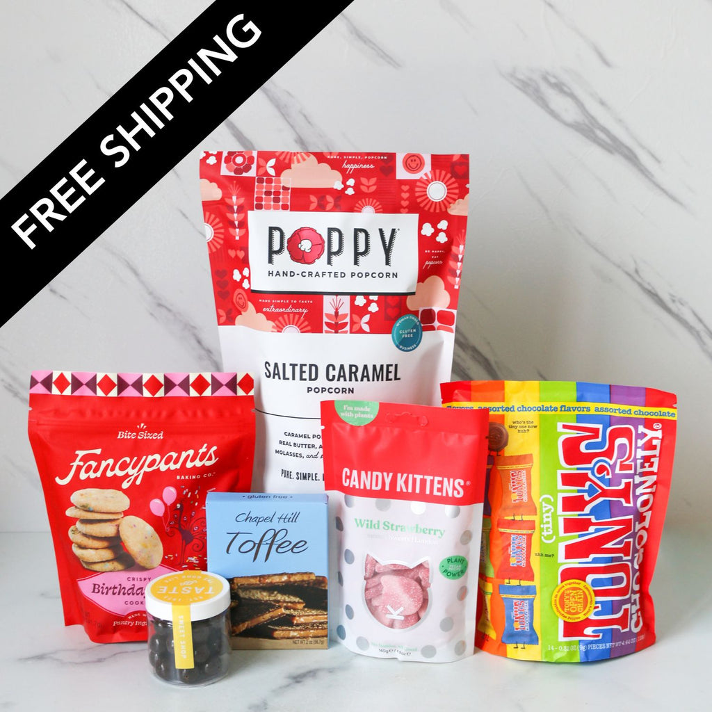 A cheerful combination of cookies and candy with chocolate delights and fruity sweets, this gift hits all the right notes of joy. A simply delicious way to treat someone special.