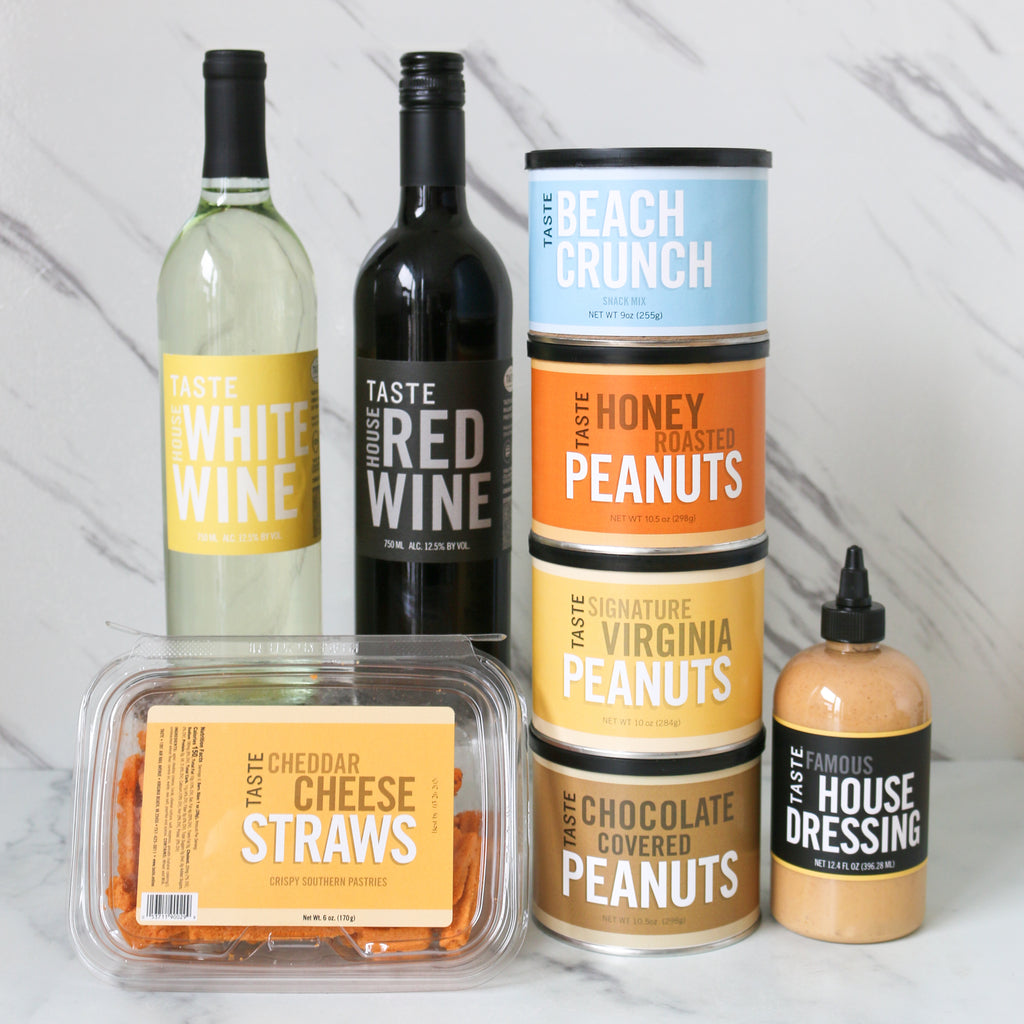 A clean sweep of our favorite TASTE products in one gift! These tried-and-true favorites provide a little bit of everything: coffee for the morning, house dressing to enhance your lunch, plenty of mid-afternoon snacks, and house wine to end the day.