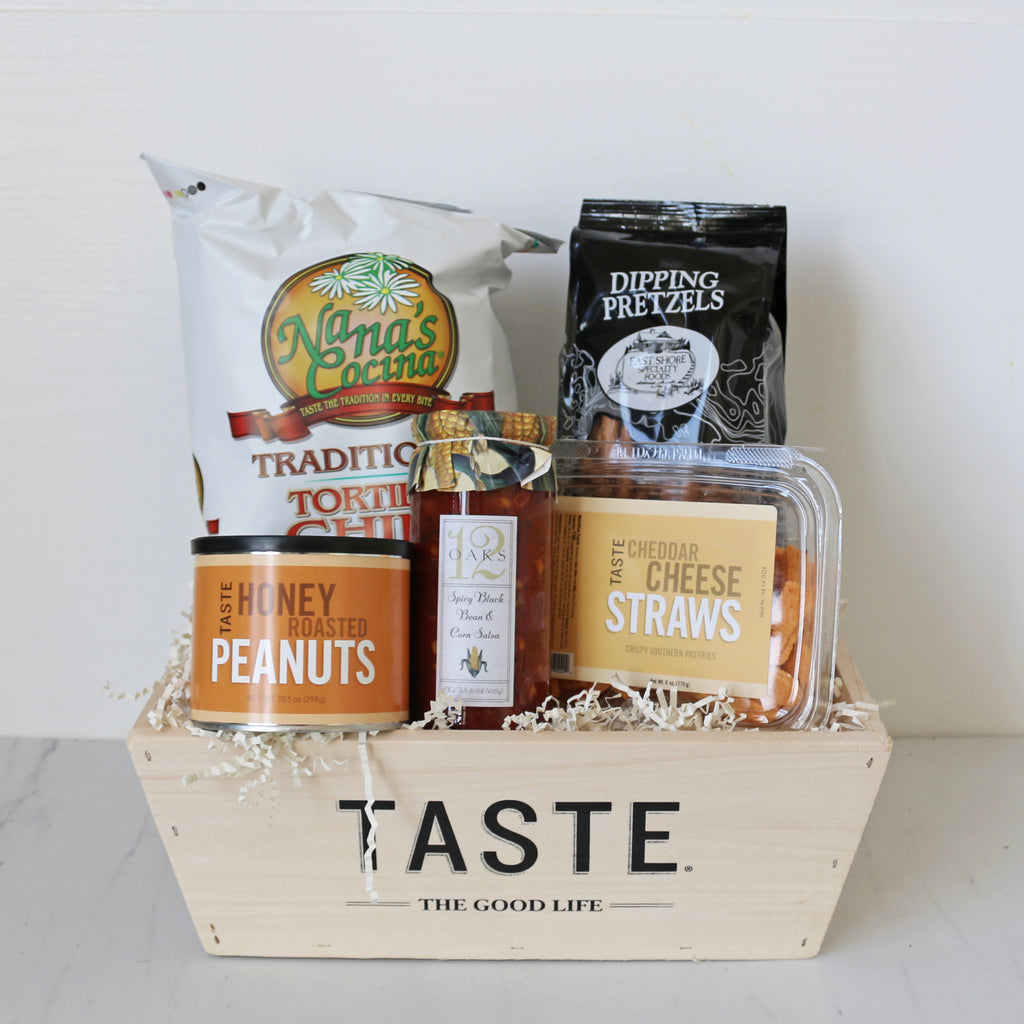 This gift comes packaged in our signature TASTE Presentation Box. Package this collection in a keepsake TASTE wooden bin for an additional $16.99.